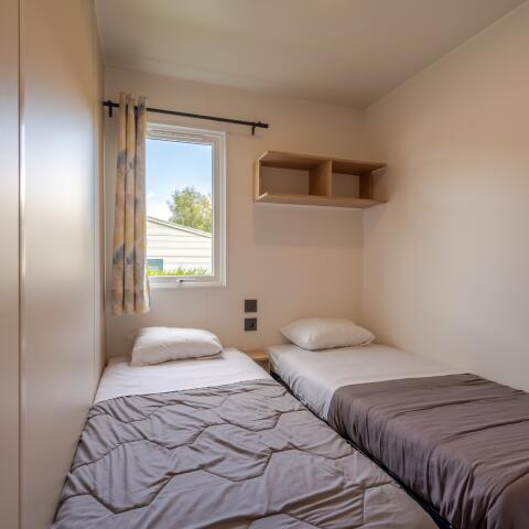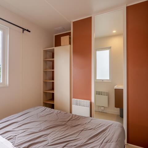 2 separate Schlafzimmer: 1 Elternschlafzimmer mit 1 Bett (160 cm x 190 cm) und 1 Badezimmer sowie 1 Schlafzimmer mit 2 Betten (90 cm x 180 cm).