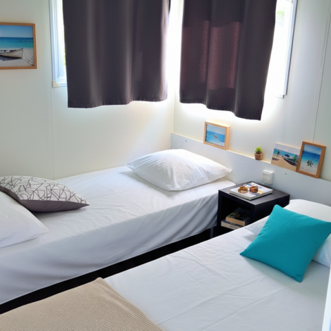 Gemachte Betten bei Ihrer Ankunft in der Unterkunft, vom Campingplatz übernommene Endreinigung, bereitgestellte Haushaltswäsche, Vermietung von Ausrüstungen...