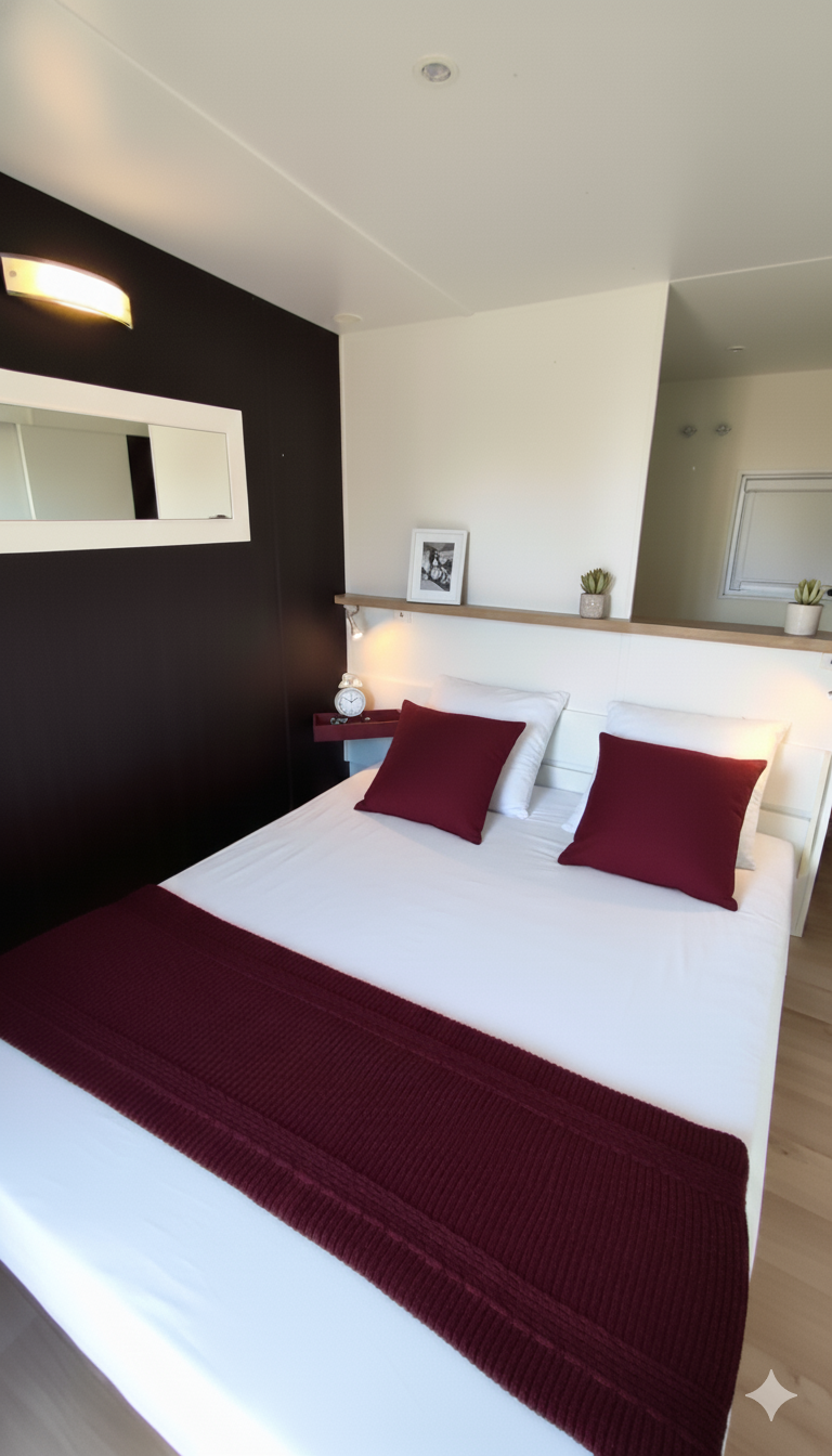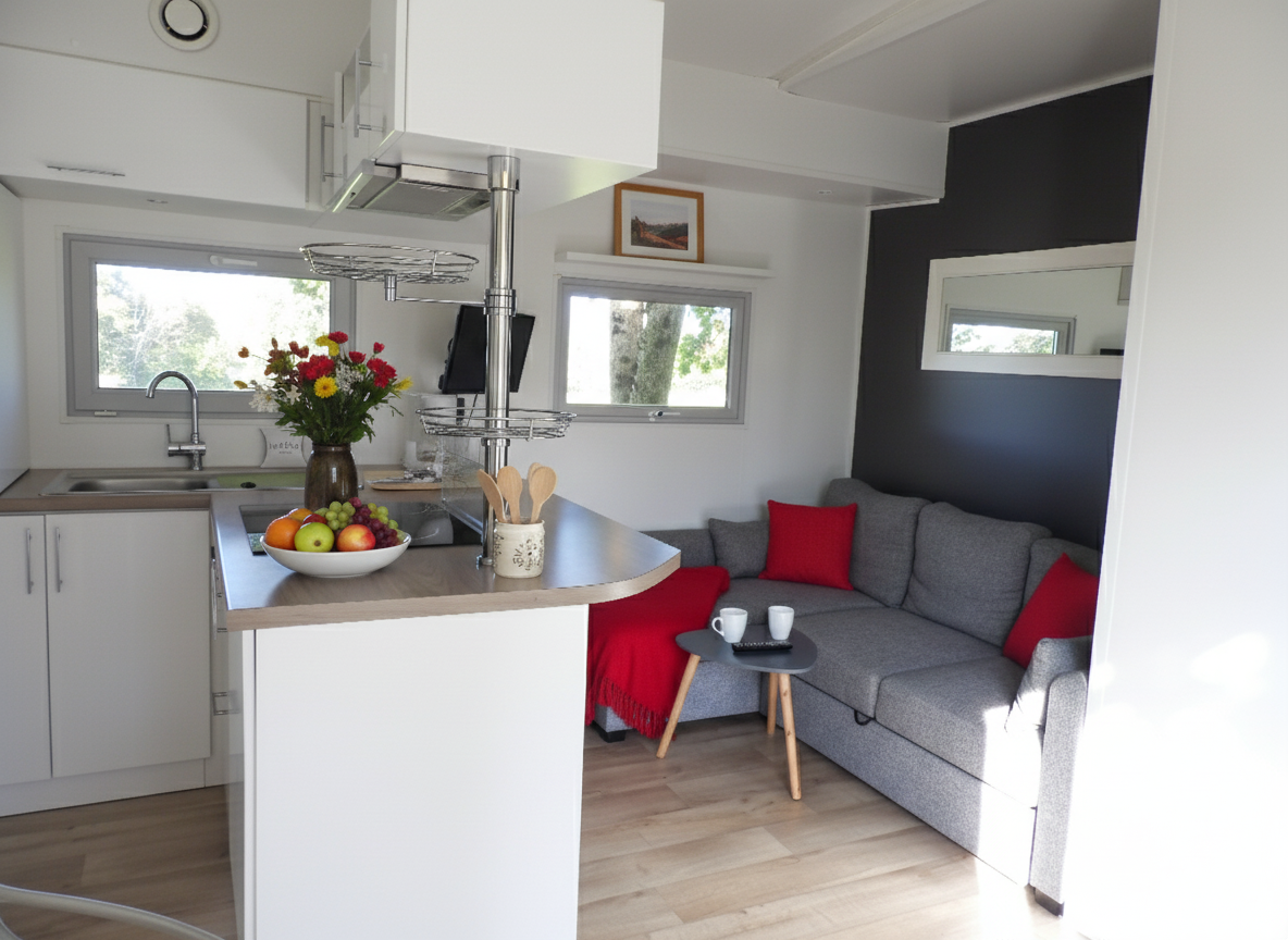 Gemachte Betten bei Ihrer Ankunft in der Unterkunft, vom Campingplatz übernommene Endreinigung, bereitgestellte Haushaltswäsche, Vermietung von Ausrüstungen...