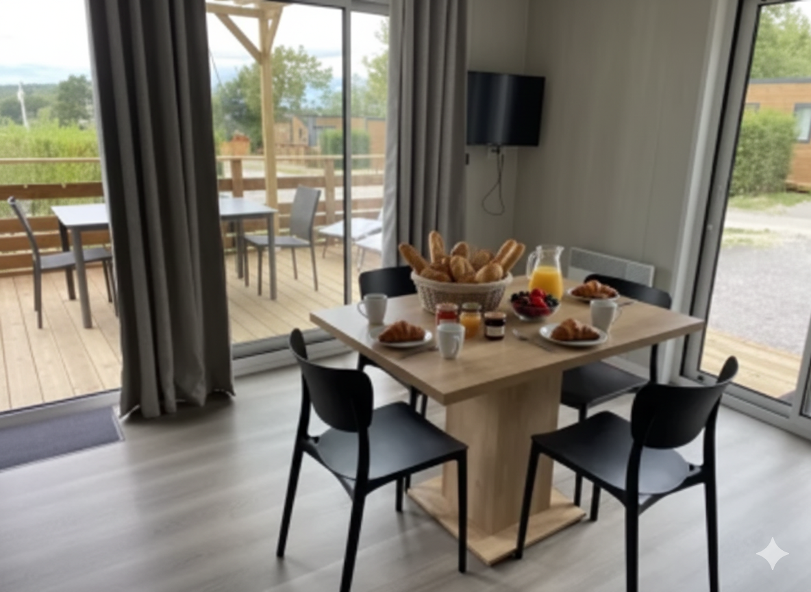 Gemachte Betten bei Ihrer Ankunft in der Unterkunft, vom Campingplatz übernommene Endreinigung, bereitgestellte Haushaltswäsche, Vermietung von Ausrüstungen...
