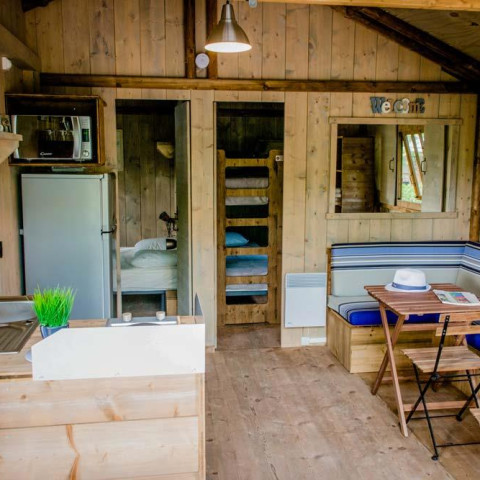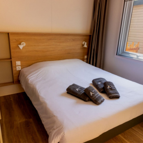 In den mit zwei oder drei Zimmern ausgestatteten Unterkünften finden Sie ein Elternschlafzimmer mit Doppelbett (160 cm) und eigenem Badezimmer sowie das oder die Kinderzimmer mit einem oder zwei Einzelbetten und Hochbetten. Die Ausstattung mit Geschirrspülmaschine, TV, Klimaanlage und Gartenmöbeln auf der überdachten Terrasse sorgt während Ihres Aufenthalts für alle Annehmlichkeiten, die Sie benötigen.