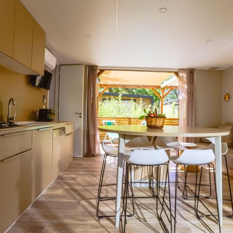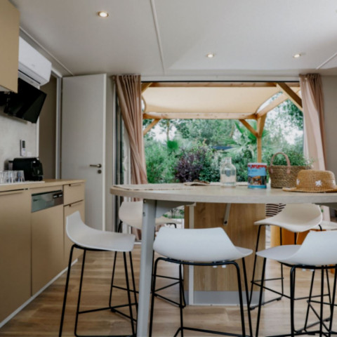 Möchten Sie sich etwas Gutes tun und ein Luxus-Mobilheim buchen? Stellen Sie Ihre Koffer im Sunêlia Luxe Key West, einer luxuriösen Unterkunft am Meer, ab! Verbringen Sie in diesen neuen und hellen Mietunterkünften einen Traumurlaub mit der Familie an der Mittelmeerküste. Hier finden Sie allen Komfort, den Sie für Ihren Aufenthalt benötigen! Die bei unseren Urlaubern beliebten, in einem nagelneuen Viertel gebauten Mobilheime bieten in ihren großzügigen Räumen Platz für bis zu sechs Personen.