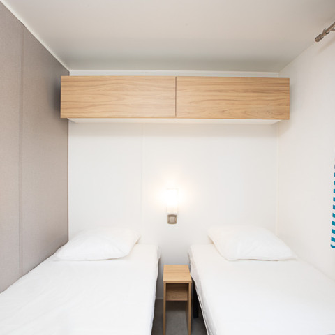 - In den Mobilheimen der Luxus-Klasse stehen Ihnen zwei bis drei Zimmer und zwei Badezimmer zur Verfügung. Sie bieten denselben Komfort wie die oben genannten Kategorien. Neben dem WLAN genießen Sie aber auch luxuriöse Hotellerie-Leistungen(bei Ihrer Ankunft gemachte Betten, Endreinigung und bereitgestellte Wäsche).