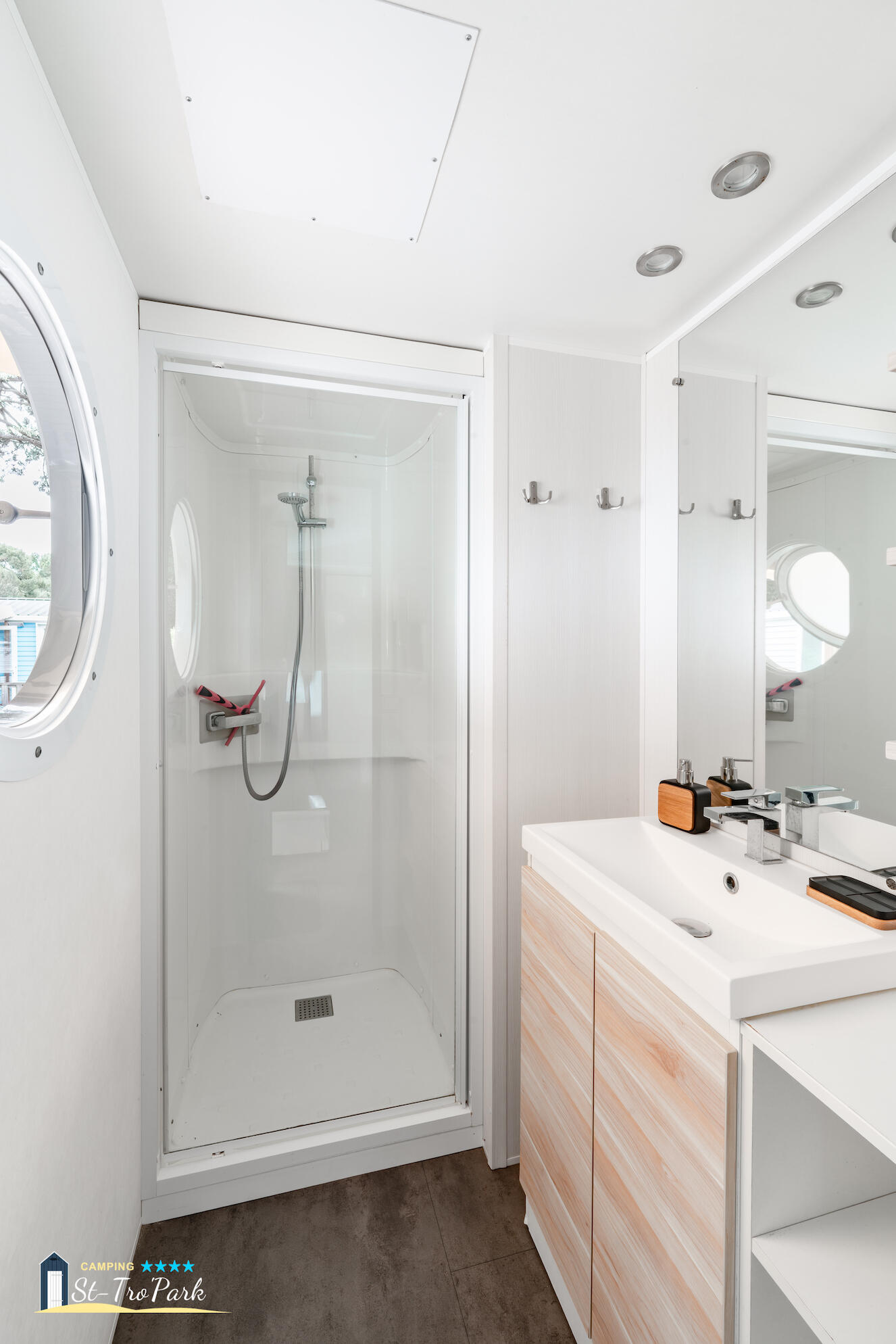 Entdecken SieChalet Premium 35m² (2 Zimmer) + überdachte Terrasse 12m² +Klimaanlage