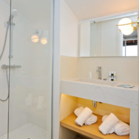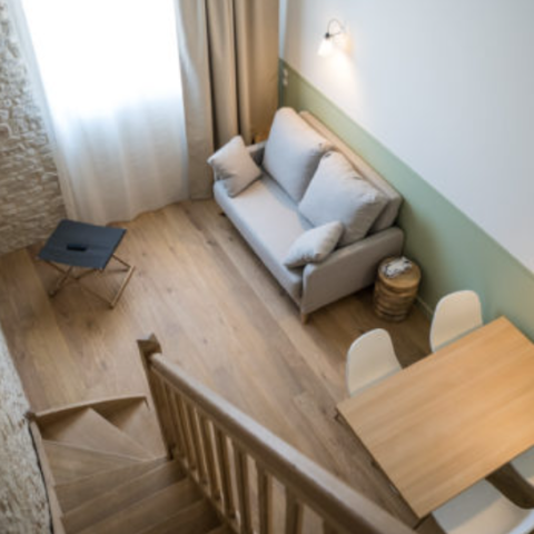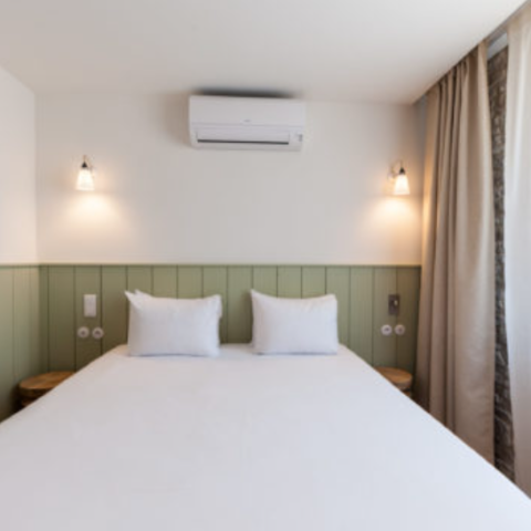 Gut zu wissen: Sie benötigen mehr Platz? Dann entscheiden Sie sich für ein Familienzimmer. Es bietet Platz für bis zu 6 Personen und besteht aus zwei klimatisierten Schlafzimmern, einem Wohnzimmer mit Schlafsofa sowie einer Ecke mit Waschbecken, Minibar (Mikrowelle auf Anfrage) und einem reizenden Privatbalkon mit Sitzgelegenheiten im Freien; so können Sie Ihren Urlaub auf der Île de Ré in vollen Zügen genießen.
