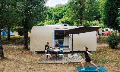 Glamping-Fans werden diese Art von Zelt lieben, denn Sie können Ihr Camping-Erlebnis in höchstem Komfort am Ufer der Dordogne in vollen Zügen genießen.