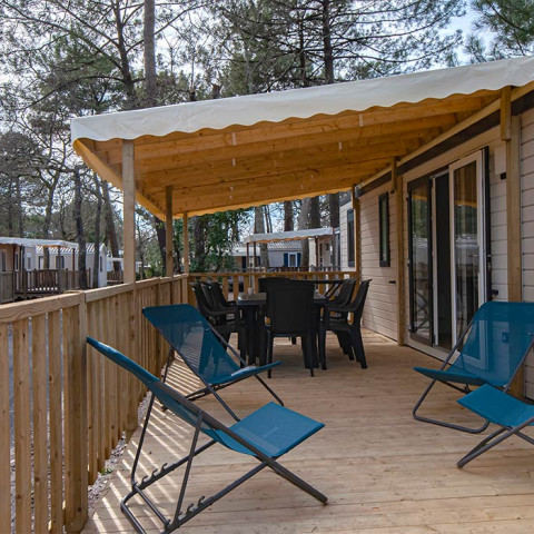 Unsere Mobilheime der Kategorie Luxe liegen mitten im Pinienwald und in Strandnähe am Bassin d'Arcachon und eignen sich perfekt für Ihren Aufenthalt im Südwesten Frankreichs. Unsere gemütlichen Unterkünfte befinden sich im Viertel La Pinasse und bieten Ihnen Komfort und Privatsphäre.