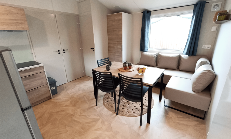 Gemachte Betten bei Ihrer Ankunft in der Unterkunft, vom Campingplatz übernommene Endreinigung, bereitgestellte Haushaltswäsche, Vermietung von Ausrüstungen...