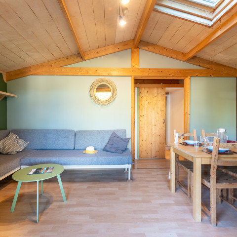 Dann entscheiden Sie sich für ein Mietchalet in Urrugne. DieIbardin-Chalets sind für bis zu 6 Urlauber ausgerichtet. Diese komfortablen, geräumigen Mietunterkünfte mit 2 oder 3 Zimmern fügen sich perfekt in den geschützten Rahmen des Campingplatzes ein.