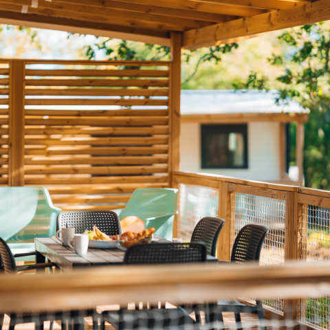 - Überdachte Holzterrasse