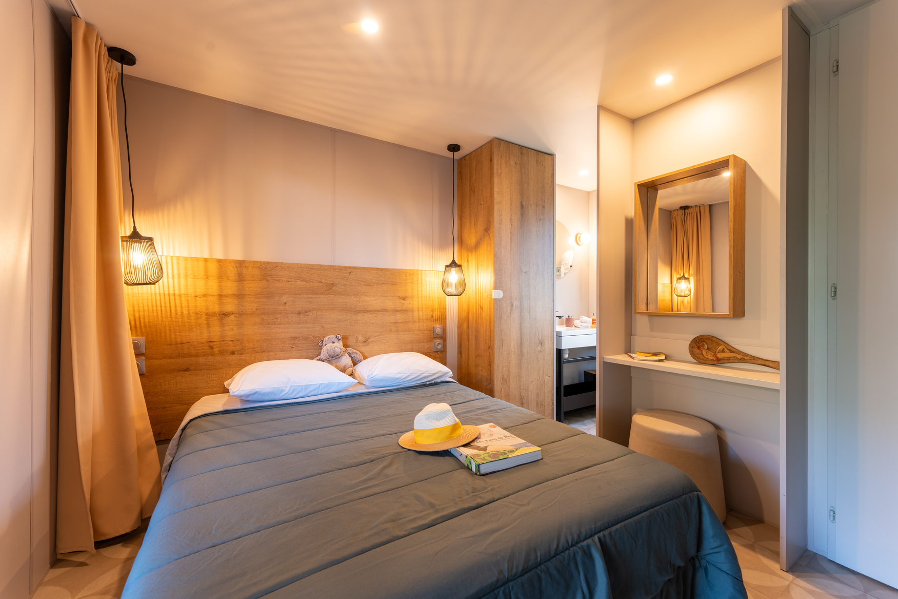 - Bett für 2 Personen (140x200) (Bettdecke und Kopfkissen werden gestellt)
