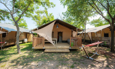 Lodge Zelt Plus – 25 m² (mit überdachter Terrasse), mit Bad