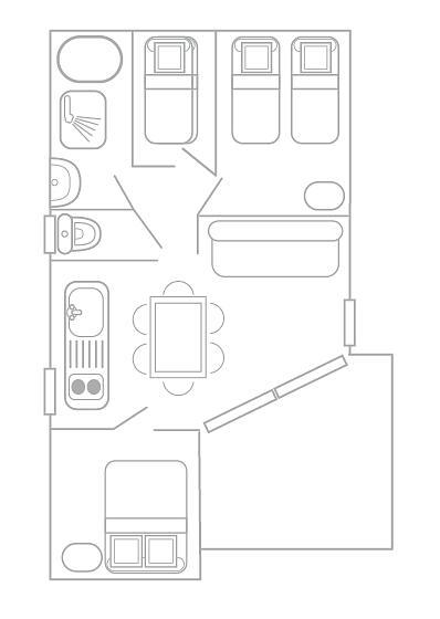 - 2 Bett für 1 Person (80x190) (Bettdecke und Kopfkissen vorhanden)