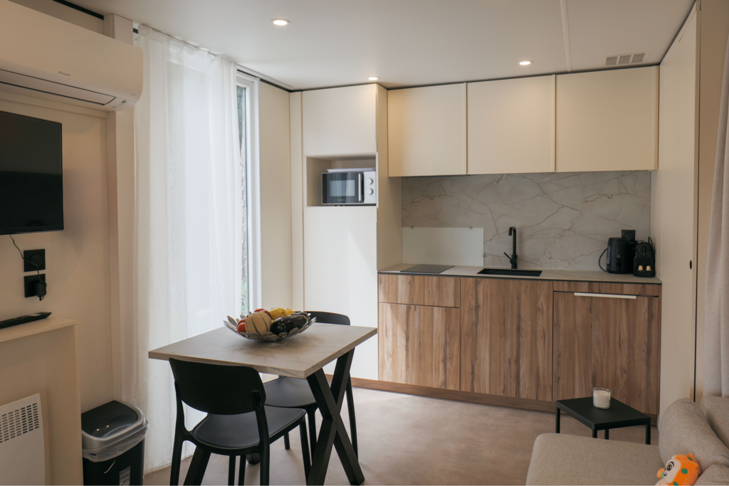Gemachte Betten bei Ihrer Ankunft in der Unterkunft, vom Campingplatz übernommene Endreinigung, bereitgestellte Haushaltswäsche, Vermietung von Ausrüstungen...