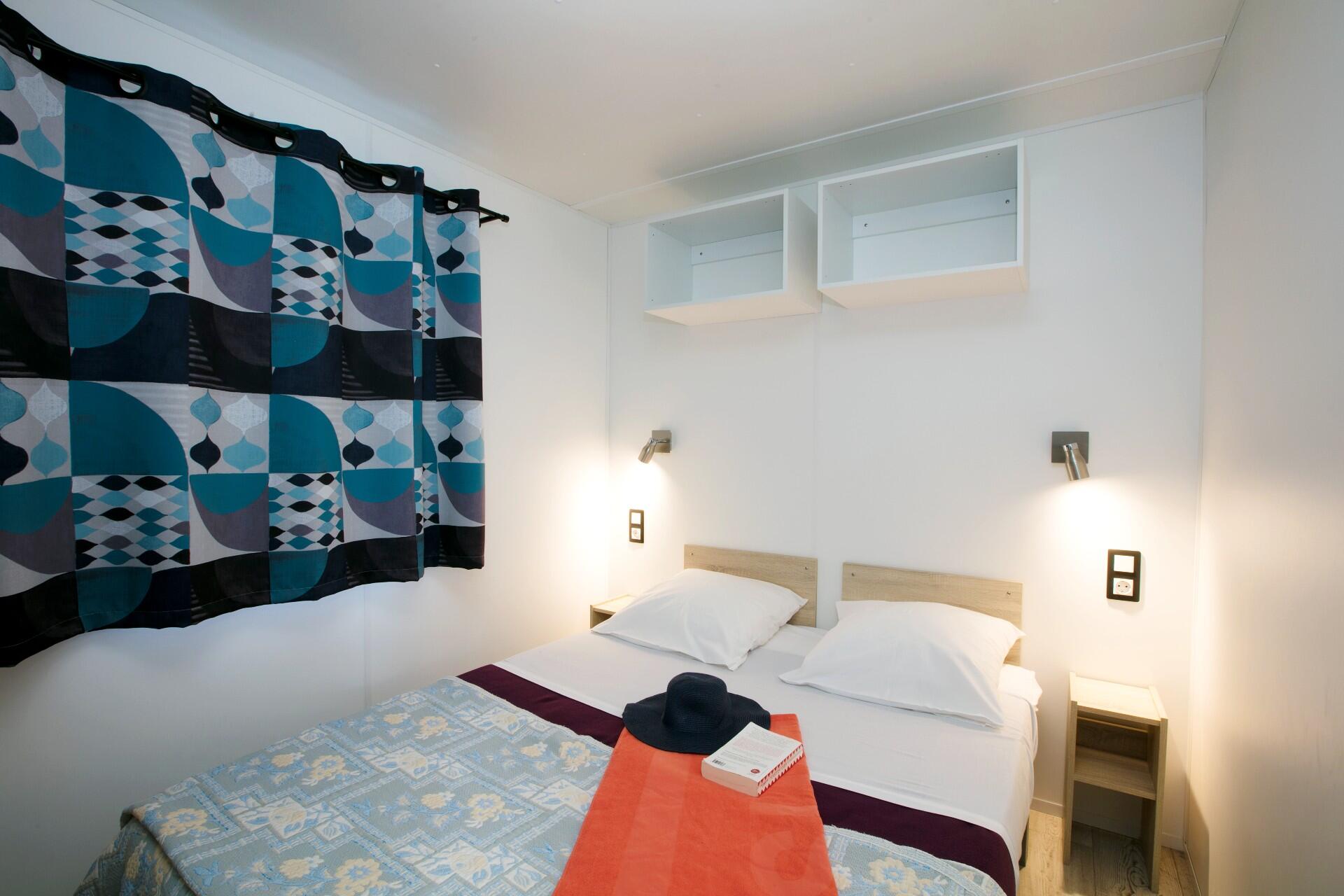 Mit einer Fläche von 28,5 m² verfügt das Sunêlia PRESTIGE 4 Personen über 3 Schlafzimmer und ist für unsere großen Familien geeignet, in denen jeder seinen eigenen Platz finden wird. Eine Doppelterrasse bietet einen Essbereich und Liegestühle zum Entspannen. Tiere werden gemäß den allgemeinen Verkaufsbedingungen akzeptiert.