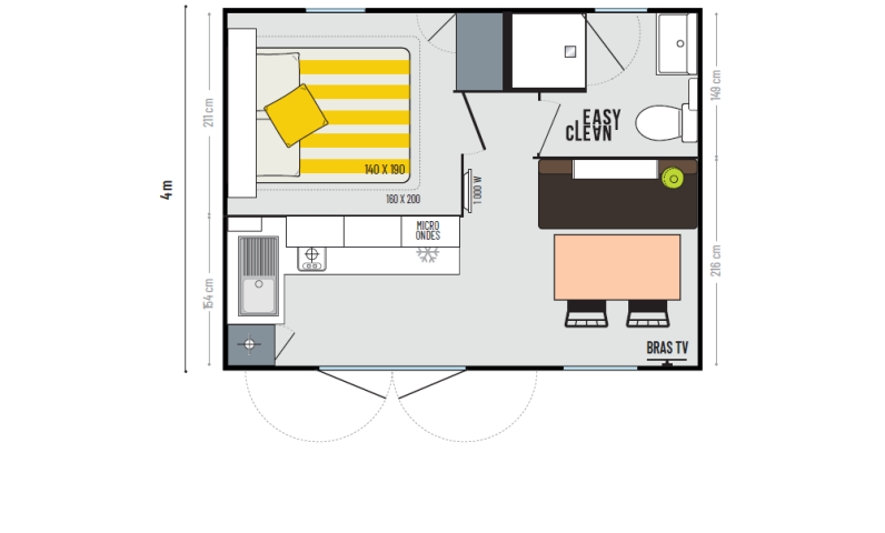Kompakt, aber voller Charme, richtet sich diese Neuheit 2026 an alle, die eine gemütliche, moderne und unkomplizierte Unterkunft suchen, ideal, um sich zu treffen, neue Energie zu tanken und einen Aufenthalt in aller Einfachheit zu genießen... aber mit Stil!