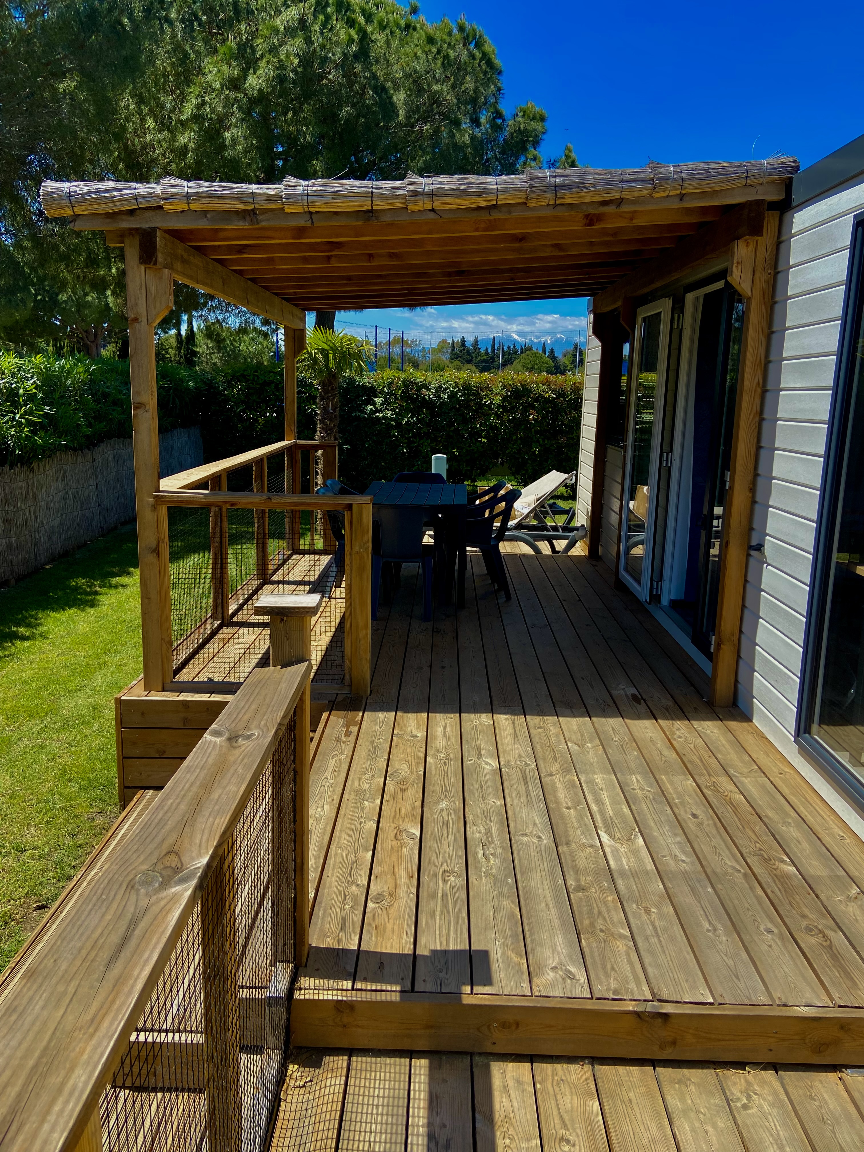 - Große halbüberdachte Holzterrasse