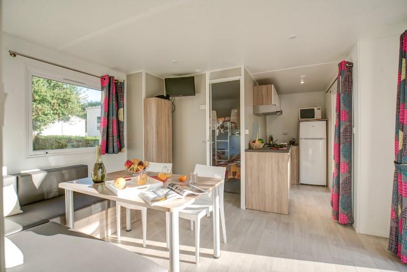 Gemachte Betten bei Ihrer Ankunft in der Unterkunft, vom Campingplatz übernommene Endreinigung, bereitgestellte Haushaltswäsche, Vermietung von Ausrüstungen...