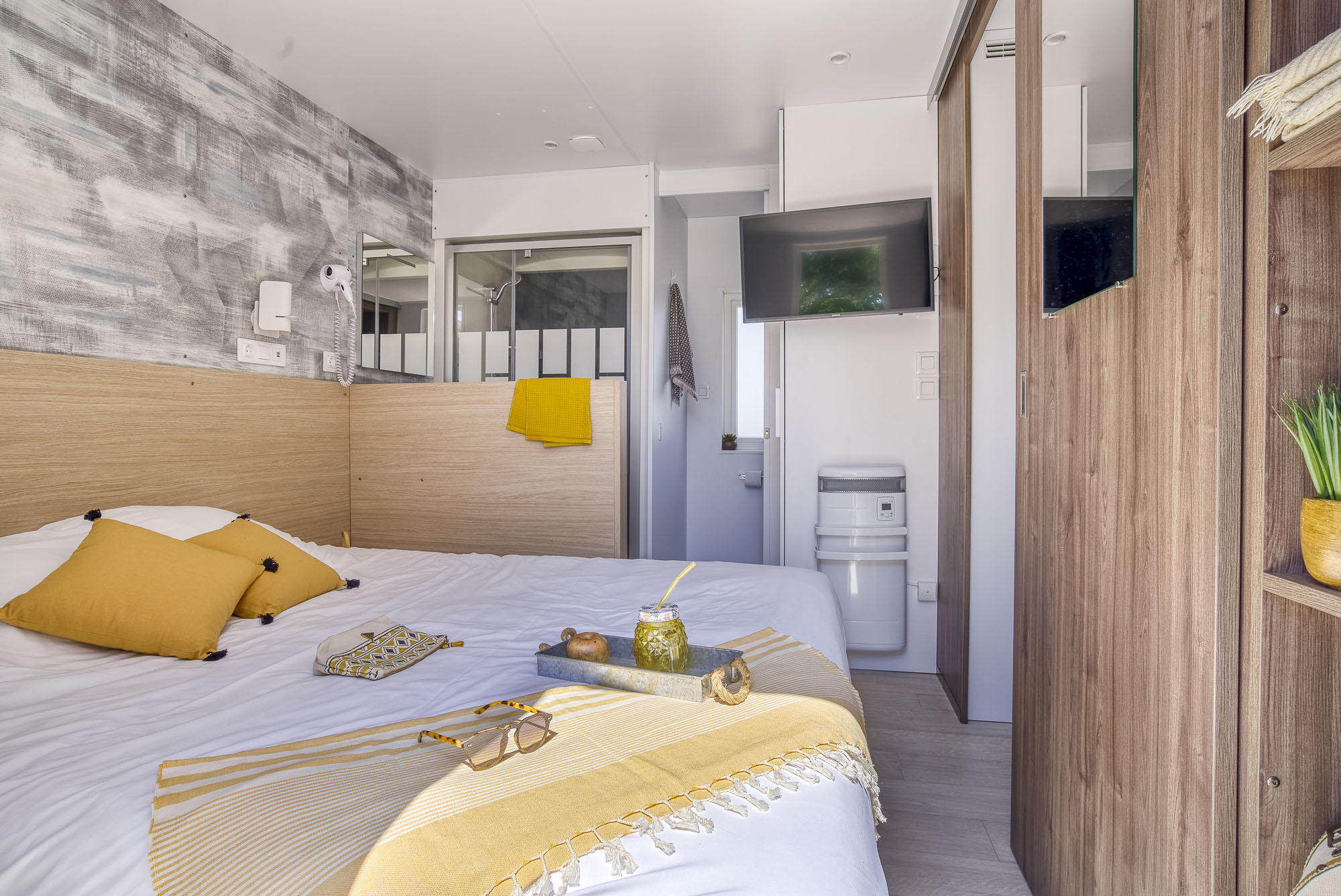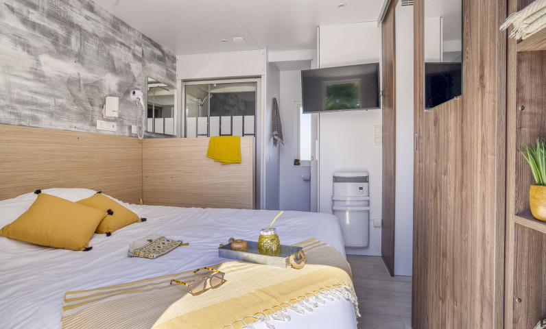 Gemachte Betten bei Ihrer Ankunft in der Unterkunft, vom Campingplatz übernommene Endreinigung, bereitgestellte Haushaltswäsche, Vermietung von Ausrüstungen...