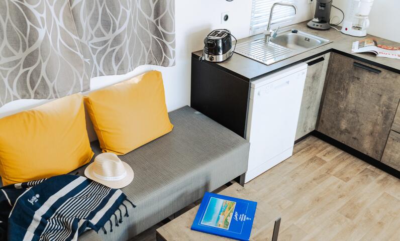 Gemachte Betten bei Ihrer Ankunft in der Unterkunft, vom Campingplatz übernommene Endreinigung, bereitgestellte Haushaltswäsche, Vermietung von Ausrüstungen...