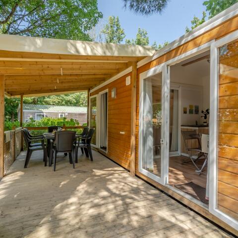 Kleines Plus: Unsere Chalets mit 3 Schlafzimmern sind perfekt für Familienurlaube. Hier hat jeder seinen Bereich, aber auf der Holzterrasse verbringen Sie die schönsten Momente in der Gemeinschaft und können dabei die Sonnenstrahlen der Vendée bis zum letzten Moment genießen.