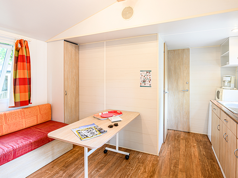 Ein Wohnbereich mit einer Essecke. Elektrische Heizung nur im Wohnbereich. WLAN inklusive.