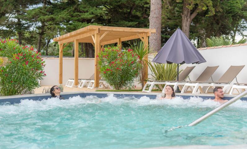 Lust auf Badeurlaub? Tauchen Sie ein in eine Welt der Entspannung im Wasserpark des Campingplatzes Les Grenettes auf der Île de Ré! Mit seinen 1043 m² Wasserbereichen, Whirlpools und dem Zen-Bereich ist er der perfekte Ort für unvergessliche Momente der Entspannung, umgeben von der Natur.