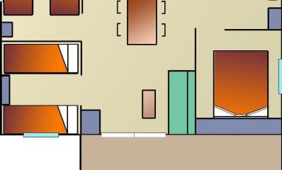 - 2 Bett für 1 Person (80x190) (Bettdecke und Kopfkissen vorhanden)
