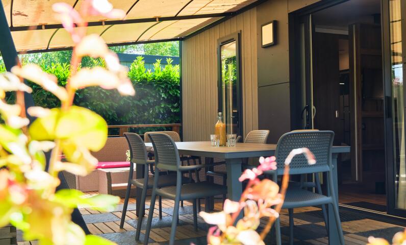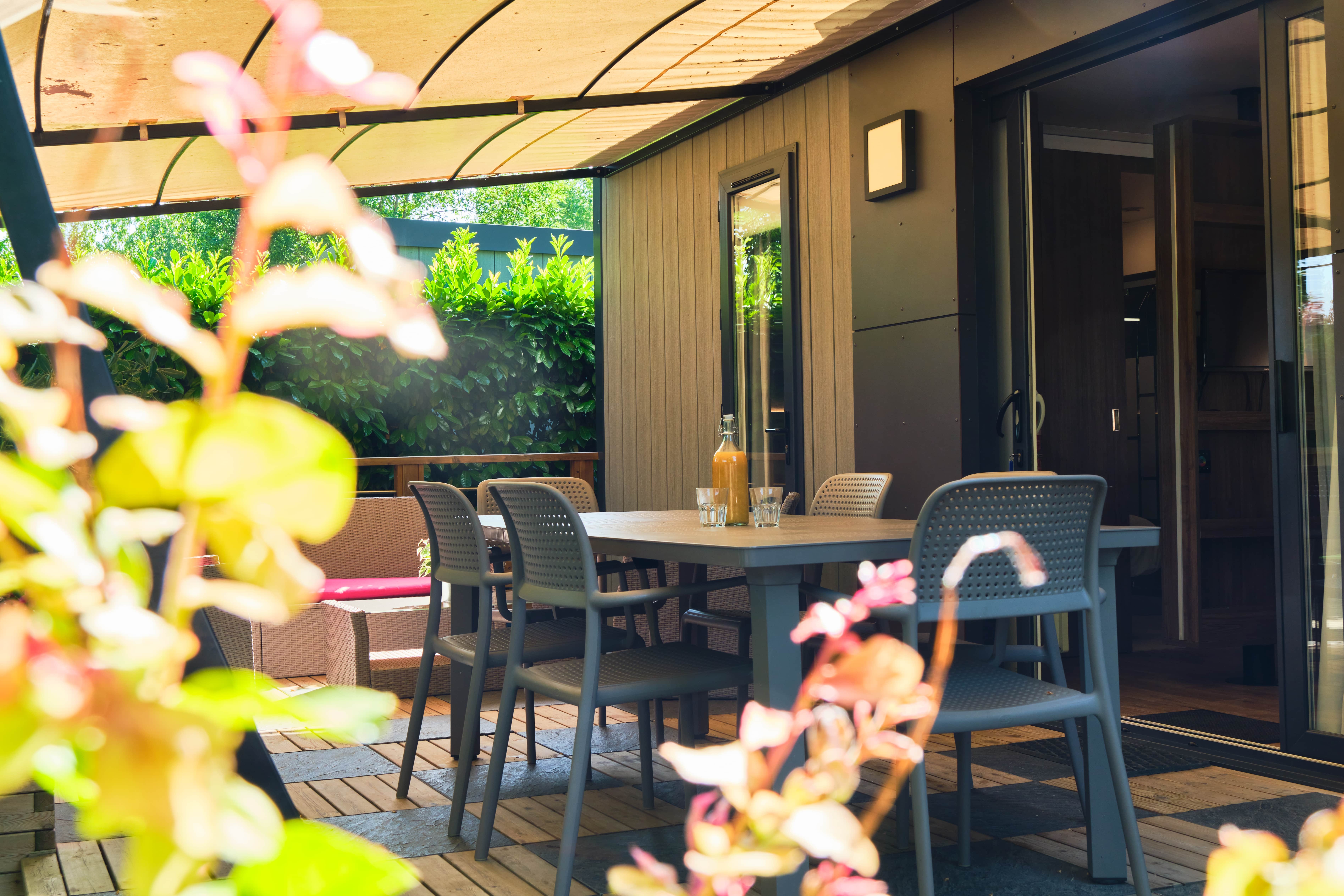 - Große halbüberdachte Holzterrasse