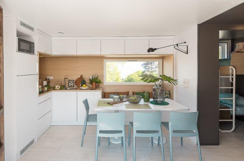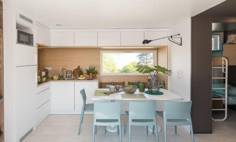 Gemachte Betten bei Ihrer Ankunft in der Unterkunft, vom Campingplatz übernommene Endreinigung, bereitgestellte Haushaltswäsche, Vermietung von Ausrüstungen...