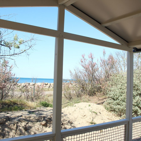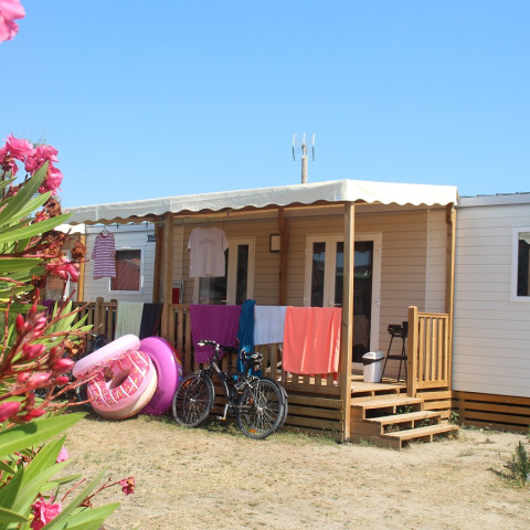 Machen Sie es sich in den erstklassigen Mobilheimen Sunêlia Prestige „Vue Infinie“ gemütlich. Dieses neue Modell eignet sich wunderbar für einen glücklichen Familienurlaub am Mittelmeer. Auf der erhöhten, 8 m2 großen Terrasse können Sie nach Herzenslust den Blick aufs Meer genießen.