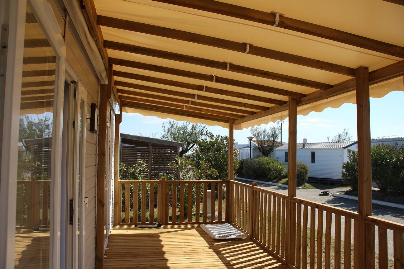 - Große überdachte Holzterrasse