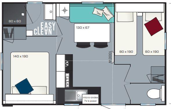 Gemachte Betten bei Ihrer Ankunft in der Unterkunft, vom Campingplatz übernommene Endreinigung, bereitgestellte Haushaltswäsche, Vermietung von Ausrüstungen...