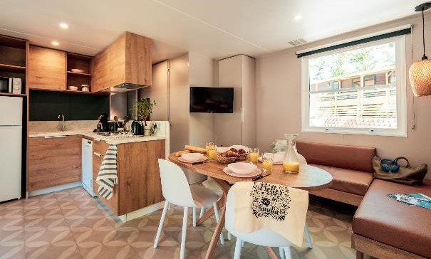 Gemachte Betten bei Ihrer Ankunft in der Unterkunft, vom Campingplatz übernommene Endreinigung, bereitgestellte Haushaltswäsche, Vermietung von Ausrüstungen...