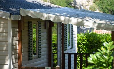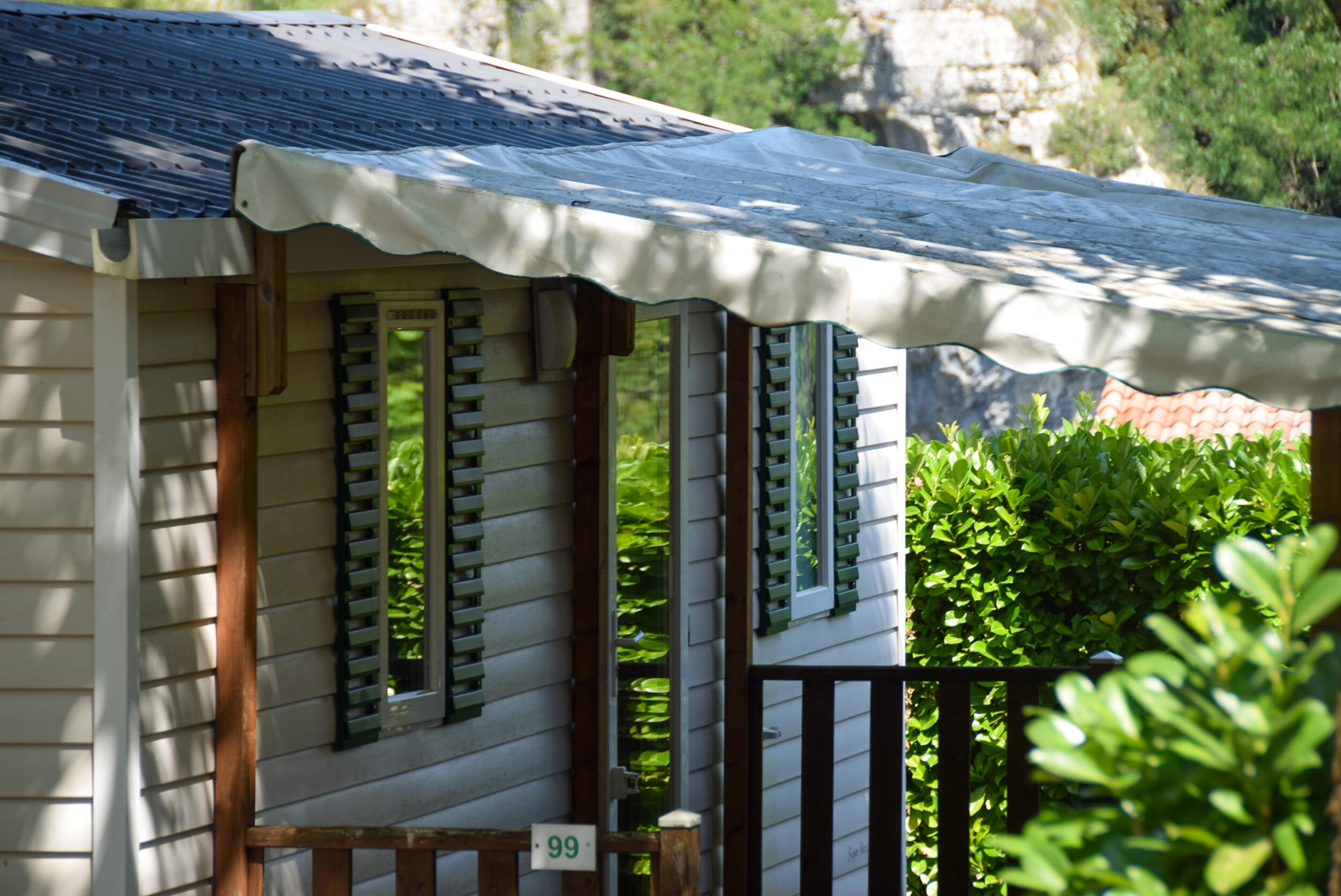 Wir bieten Ihnen sehr komfortable und gut ausgestattete Mobilheime. Freuen Sie sich auf eine große, überdachte Terrasse mit Gartenmöbeln (Stühle und Tisch), um die Natur in vollen Zügen zu genießen.