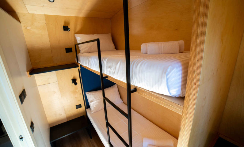 - Etagenbett 2 Ebenen (80x200) (Bettdecke und Kopfkissen vorhanden)