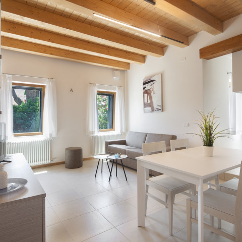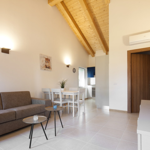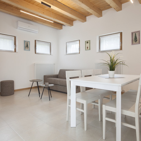 - Ca' della Quercia, das 73 m² große Eichenhaus, bietet Platz für Ihre Familie mit 4 bis 6 Personen und befindet sich im 1. Stock der Residenz. Es erwartet Sie ein großer Wohnraum mit komplett ausgestatteter Küche sowie ein Balkon mit Ess- und Sitzbereich und Blick auf die umliegende Natur. Für erholsame Nächte stehen Ihnen ein Doppelzimmer, ein Zimmer mit ausziehbarem Einzelbett und ein Schlafsofa im Wohnzimmer zur Verfügung.