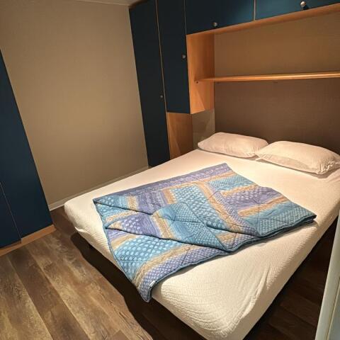 - Außenbereich zum Faulenzen: Nutzen Sie die Terrasse für gesellige Mahlzeiten oder entspannen Sie sich in der Sonne auf den Liegestühlen. Alle Mobilheime verfügen über eine überdachte Terrasse.