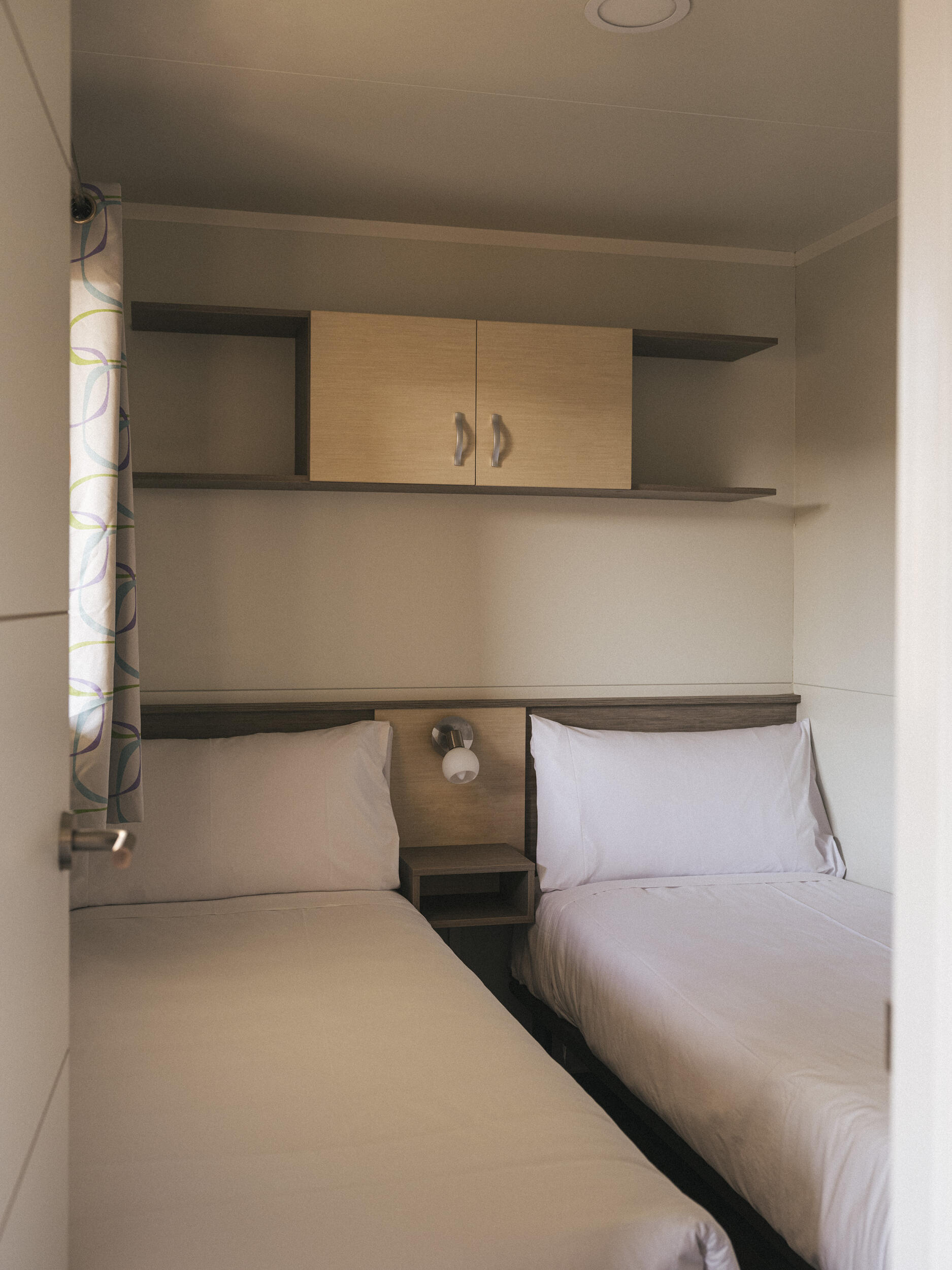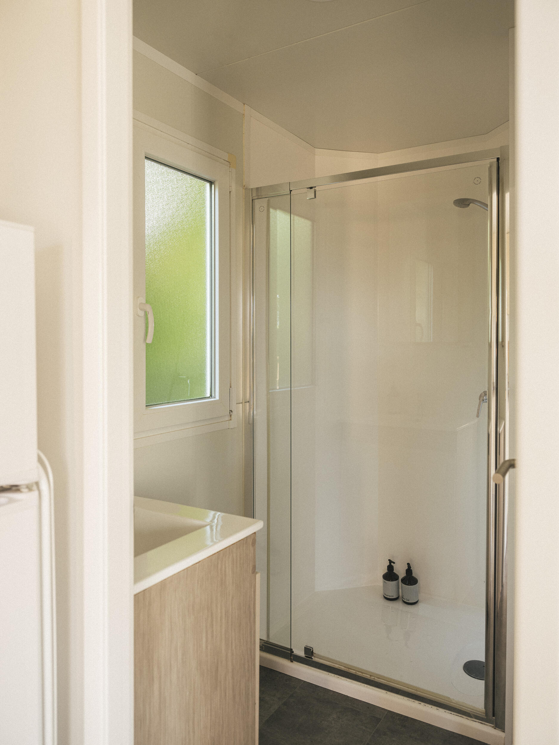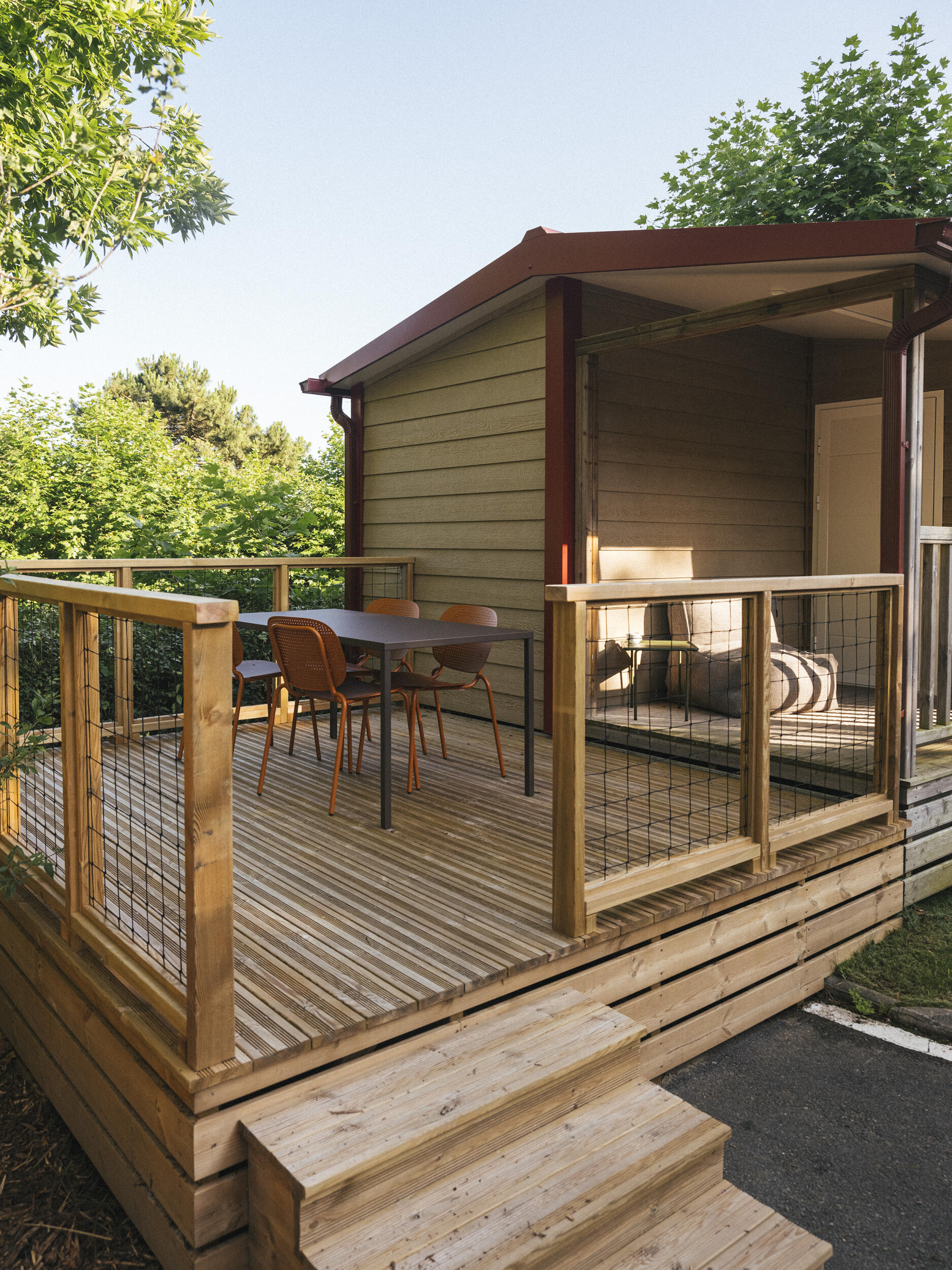 Das Mobil Home Family ist die perfekte Wahl für Ihren Urlaub mit der Familie oder einer Gruppe von Freunden. Es wurde von uns sorgfältig entworfen und bietet Platz für bis zu 4 Personen. Diese modernen Mobilheime bieten eine detaillierte und geräumige Einrichtung für Ihren Komfort. Jedes Mobilheim verfügt über zwei gut ausgestattete Schlafzimmer: eines mit einem Doppelbett und eines mit zwei Einzelbetten. Außerdem steht Ihnen eine gemütliche Terrasse mit einer möblierten Veranda zur Verfügung, die zum Entspannen im Schatten einlädt. Die Küche ist komplett ausgestattet mit Cerankochfeld, Mikrowelle, Kühlschrank, Kochutensilien und Besteck, so dass Sie sich Ihre eigenen Mahlzeiten zubereiten können. Das Badezimmer verfügt über eine Dusche und eine Toilette für Ihren Komfort. Hunde sind in diesem Mobilheim willkommen.