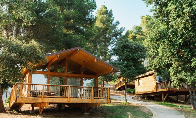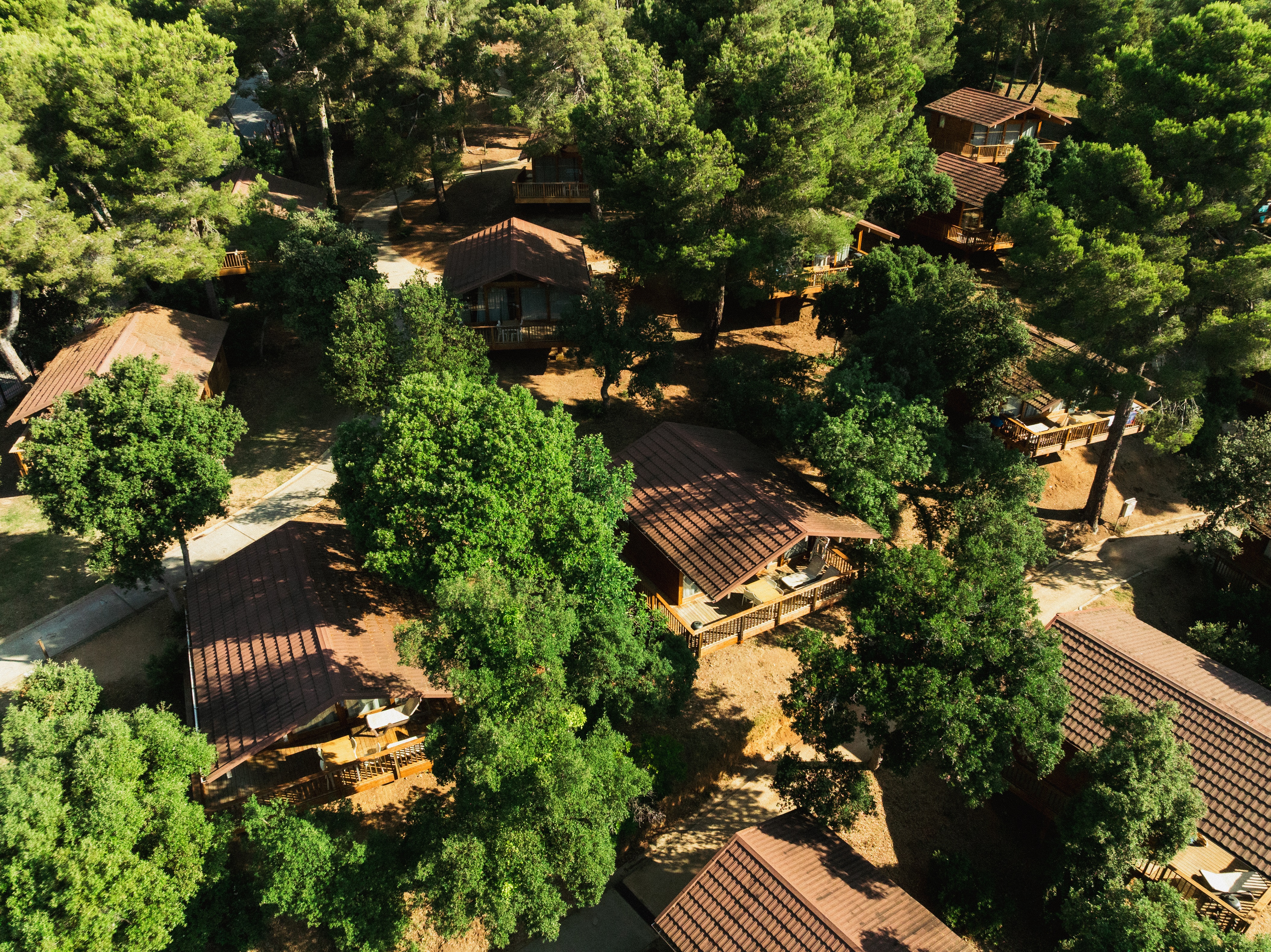 Chalet von 51 m² für 6 Personen. Ein Schlafzimmer mit Doppelbett 150 x 190 cm. 2 Schlafzimmer mit zwei Einzelbetten oder 2 Etagenbetten. Eine offene Küche mit Zugang zur Terrasse, ausgestattet mit einem Cerankochfeld, einem großen Kühlschrank mit Gefrierfach, einer Mikrowelle, einer Dolce Gusto-Kapselkaffeemaschine, Besteck, Geschirr und Küchenutensilien. Ein Badezimmer ( Dusche und Waschbecken), Flachbildfernseher, Klimaanlage und Heizung. Kostenloses WLAN.