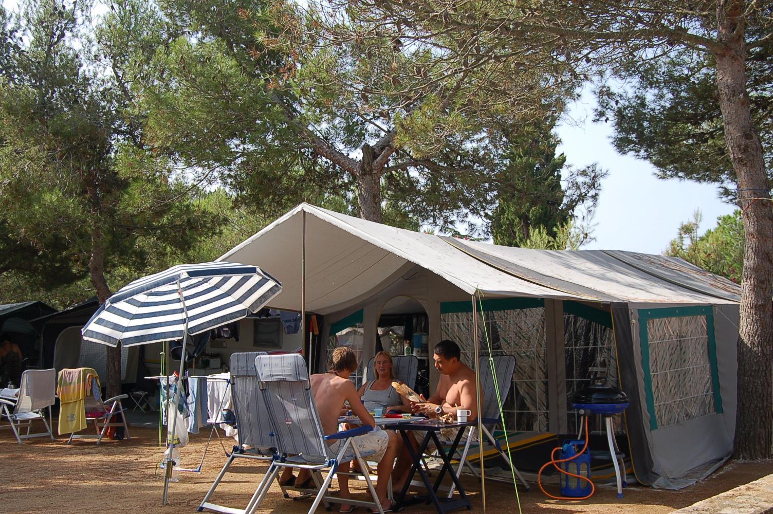 Die Stellplätze für Wohnwagen liegen überwiegend im Schatten von Kiefern, Sonnenbäumen, Eichen und Johannisbrotbäumen. Sie befinden sich in ruhigen Gebieten. Die Stellplätze sind mit dem Auto erreichbar. Die Größe der Stellplätze ist sehr unterschiedlich, geben Sie daher bitte die Größe Ihres Wohnwagens/Wohnmobils an.