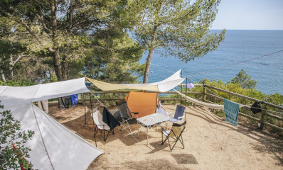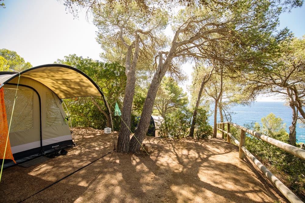 Sie befinden sich auf der ersten Linie des Berges mit einem schönen Blick auf das Mittelmeer, sind hauptsächlich von Pinien, Eichen und Johannisbrotbäumen beschattet und sind sonnig. Sie befinden sich in ruhiger Lage und abseits der örtlichen Straßen. Die Stellplätze sind nicht mit dem Auto erreichbar, da wir die natürliche und wilde Umgebung des Campingplatzes bewahren wollen, so dass Sie zu Fuß dorthin gehen müssen.