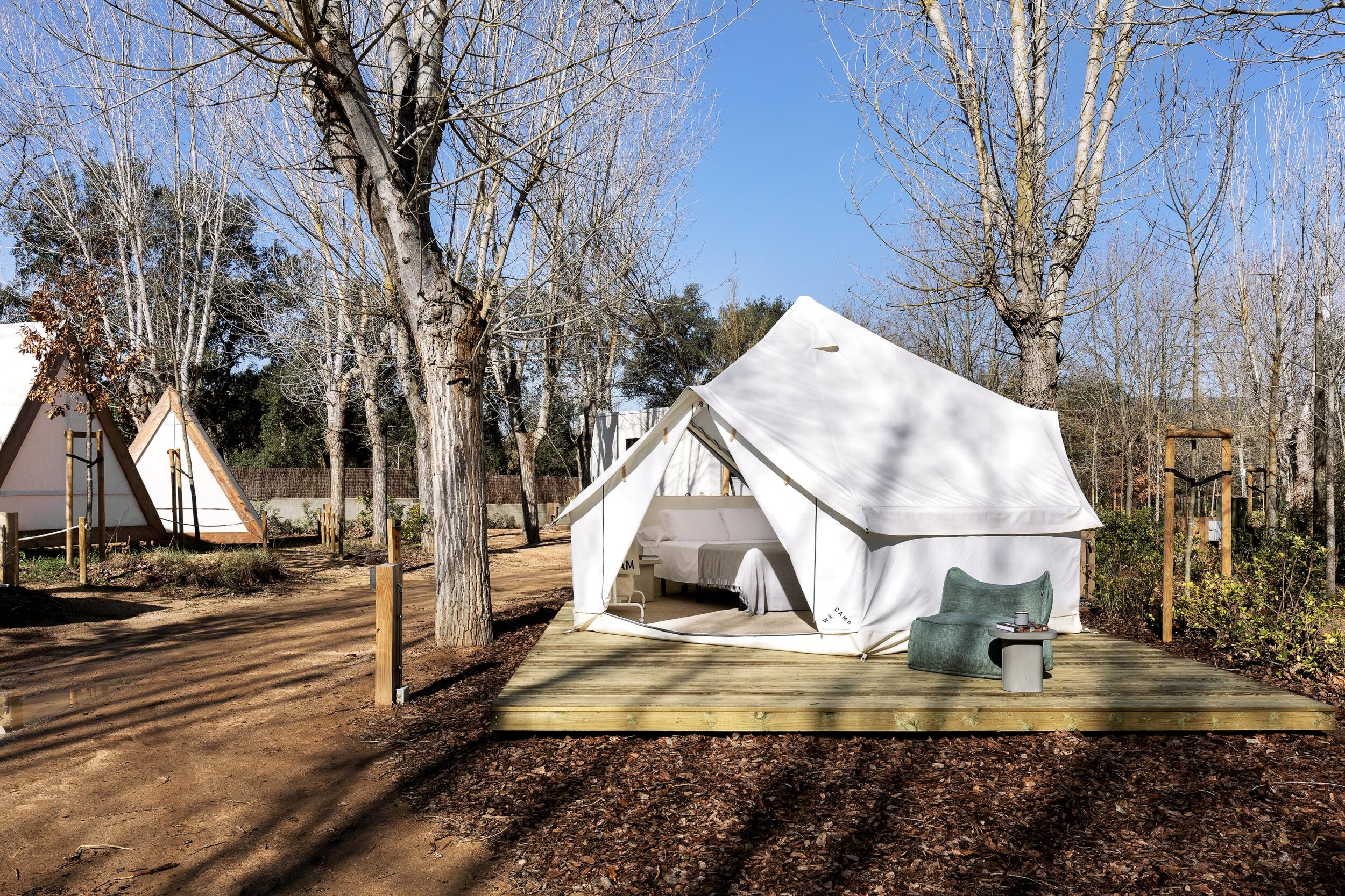 Unser Bell Tent ist ideal für Paare, die auf dem Campingplatz inmitten der Natur etwas anderes suchen, mit einem Hauch von Luxus. Es verfügt weder über eine Küche noch ein eigenes Bad, aber die öffentlichen Toiletten sind nur wenige Meter vom Zelt entfernt. Das Beste an ihm? Es verfügt über ein bequemes Doppelbett, einen Minikühlschrank, Küchenutensilien und eine Mikrowelle. Hunde und Babys sind in diesem Zelt nicht erlaubt.