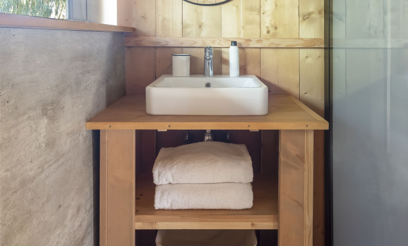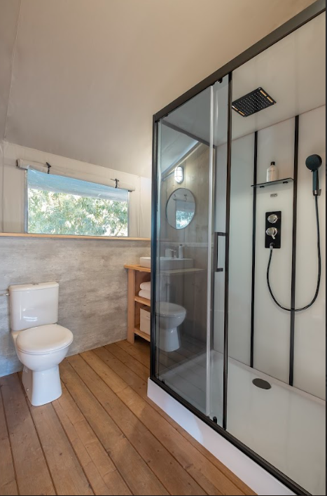 Authentizität und Komfort vereinen sich in unseren renovierten Lodges, die geräumige, gemütliche und vielseitige Unterkünfte bieten. Genießen Sie zwei Schlafzimmer, die bis zu 6 Personen beherbergen können: ein Hauptschlafzimmer mit Doppelbett, Klimaanlage und Ankleideraum und ein weiteres Schlafzimmer mit zwei Etagenbetten. Die Küche ist mit allem ausgestattet, was Sie brauchen: Kühlschrank mit Gefrierfach, Mikrowelle, Cerankochfeld, Geschirr und eine Nespresso-Kaffeemaschine.