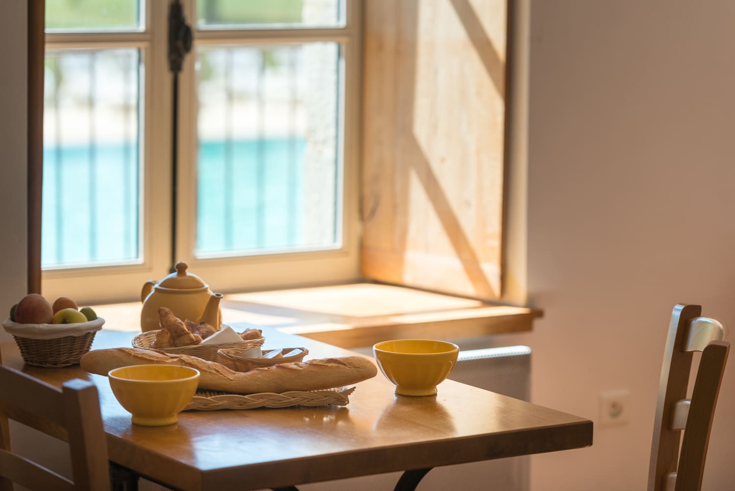 - Double bed (140x190) (duvet and pillows provided)