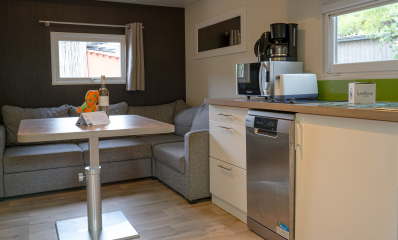 The TAOS mobile home is ideal for a family vacation where comfort and friendliness are the order of the day. With its 1 to 3 spacious bedrooms, it can accommodate up to 6 people, offering everyone their own space while encouraging shared moments. Its well-equipped kitchen makes it easy to prepare family meals, and its bright living room quickly becomes a place to relax after a day full of adventure at the campsite. Every detail of the TAOS is designed to make your stay enjoyable, from practical storage spaces to the modern bathroom. It is the perfect option for a successful family vacation, in a natural setting, with all the comforts of home.