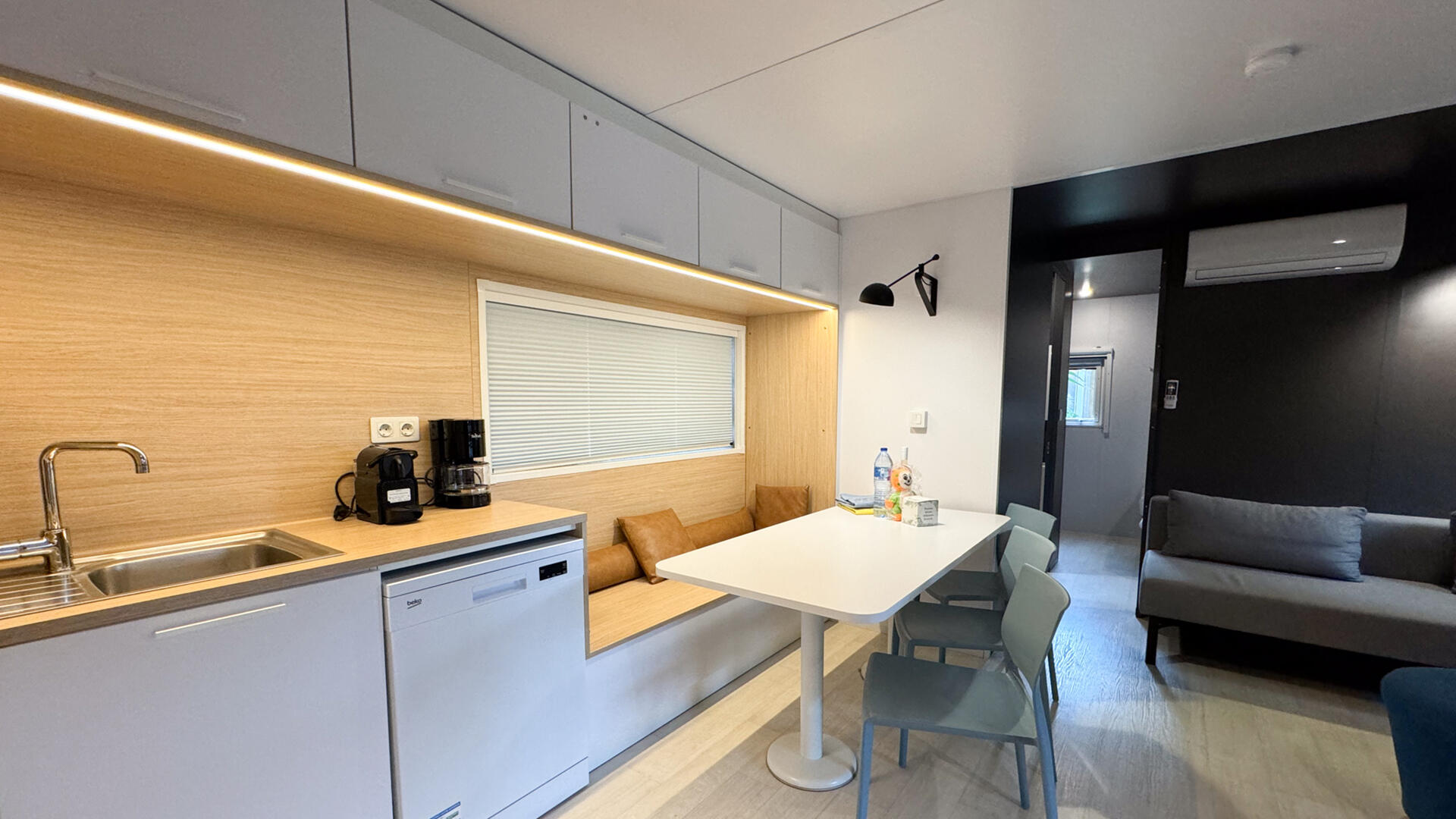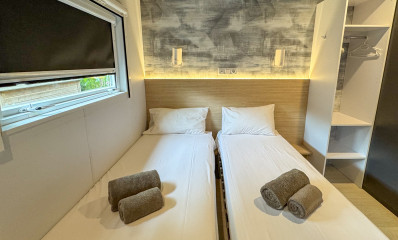 The TAOS mobile home is ideal for a family vacation where comfort and friendliness are the order of the day. With its 1 to 3 spacious bedrooms, it can accommodate up to 6 people, offering everyone their own space while encouraging shared moments. Its well-equipped kitchen makes it easy to prepare family meals, and its bright living room quickly becomes a place to relax after a day full of adventure at the campsite. Every detail of the TAOS is designed to make your stay enjoyable, from practical storage spaces to the modern bathroom. It is the perfect option for a successful family vacation, in a natural setting, with all the comforts of home.