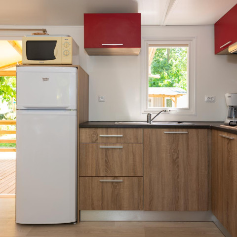 The TAOS mobile home is ideal for a family vacation where comfort and friendliness are the order of the day. With its 1 to 3 spacious bedrooms, it can accommodate up to 6 people, offering everyone their own space while encouraging shared moments. Its well-equipped kitchen makes it easy to prepare family meals, and its bright living room quickly becomes a place to relax after a day full of adventure at the campsite. Every detail of the TAOS is designed to make your stay enjoyable, from practical storage spaces to the modern bathroom. It is the perfect option for a successful family vacation, in a natural setting, with all the comforts of home.