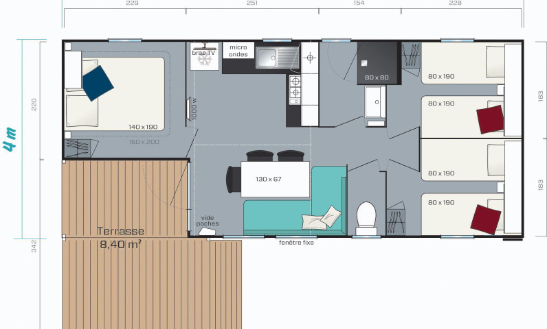 - 2 Single bed (80x190) (duvet and pillows provided)
