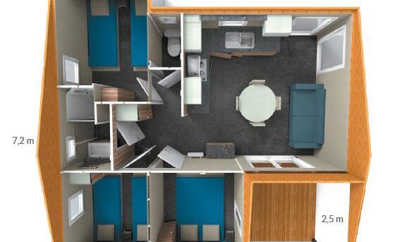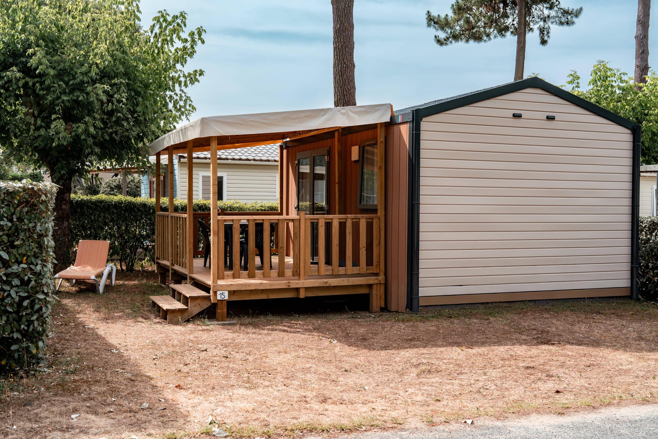 Want to discover the accommodation Chalet Premium 46m² (3 bedrooms) + air conditioning + sheltered terrace + Dishwasher ?